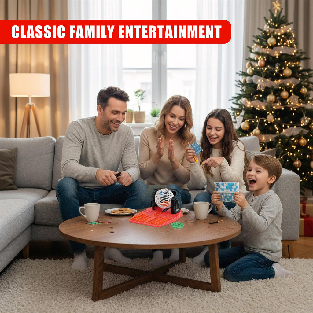Bring the bingo hall home. This traditional bingo game set is a great party game for kids and adults. Perfect for Christmas, New Year's, Easter, or birthdays, guaranteeing hours of laughter.