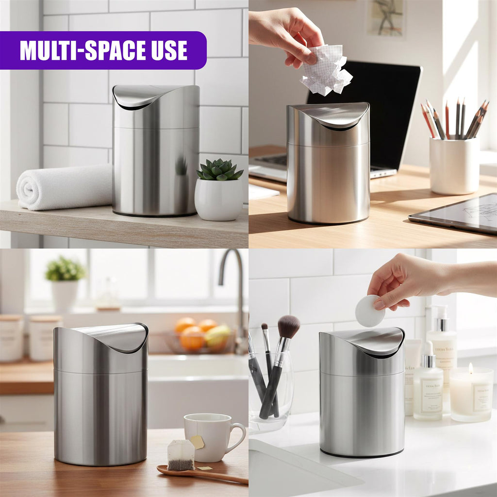 Add a touch of convenience and style to your home with our 1.5L Mini Swing Bin. This versatile mini desktop bin is designed to handle small daily waste in any room. Whether you need a tidy spot for tea bags in the kitchen, a tea bag bin for used teabags, or a discreet place for makeup wipes on your dressing table, this bin delivers. Made from durable brushed stainless steel with a practical swing lid, it hides rubbish from view while remaining easy to empty and clean. Compact, modern, and practical, it is the perfect small waste bin with lid for keeping your surfaces spotless.