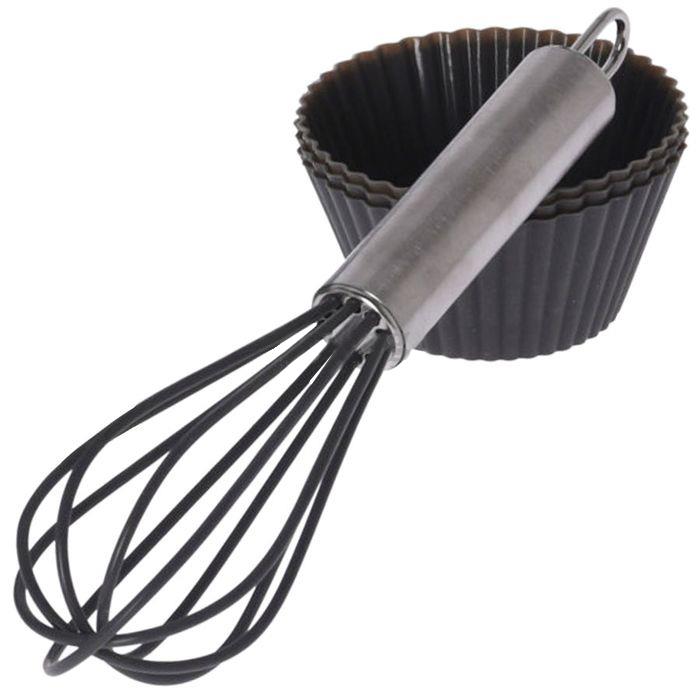 This kid’s baking set is perfect to give the little ones a real baking experience. It comes in a suitable size for children, consists of six muffin molds, a loaf pan, a rolling pin, a whisk, two spatulas, and a brush.