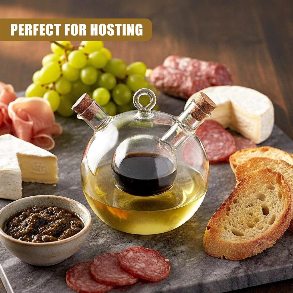 Clever 2 in 1 oil dispenser stores olive oil and vinegar together in one elegant bottle. Separate chambers make seasoning quick and effortless while saving space on your kitchen counter or table.