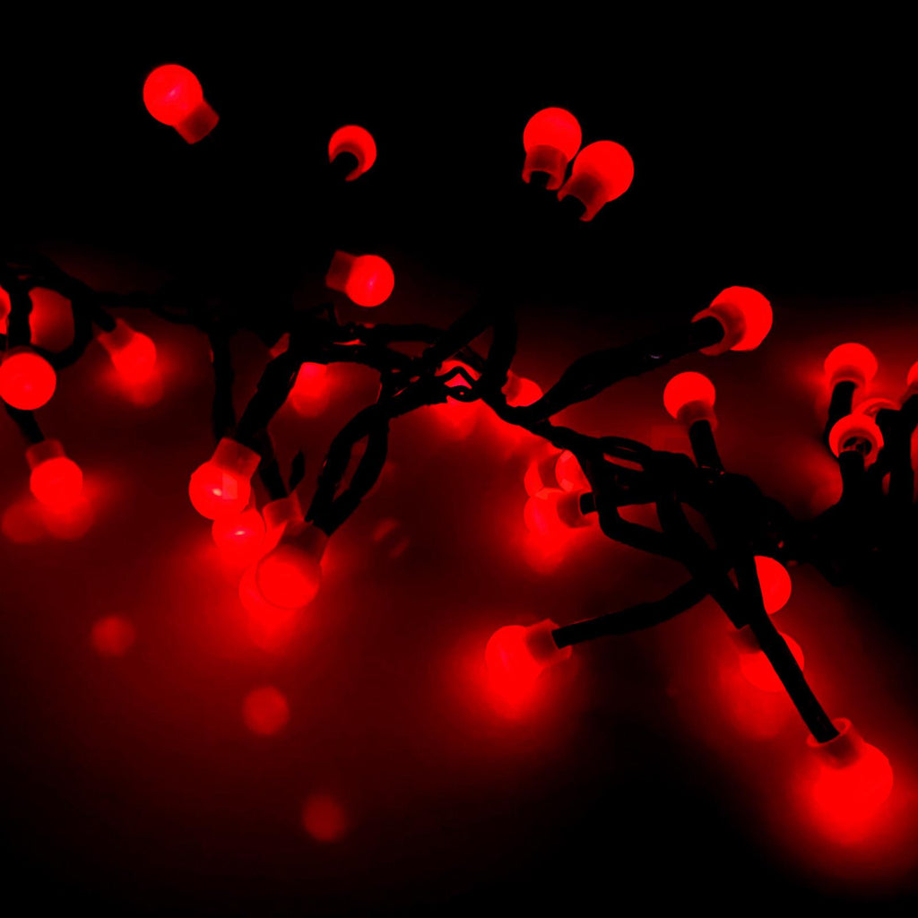 These sets of LED berry Christmas lights in the form of little berries feature 8 Functions Build-in Controller with Timer Transformer: Combination, Waves, Sequential, Slow Glow, Chasing/Flash, Slow Fade, Twinkle Flash and Steady On. The ninth option is “OFF”. The bulbs are non-replaceable.