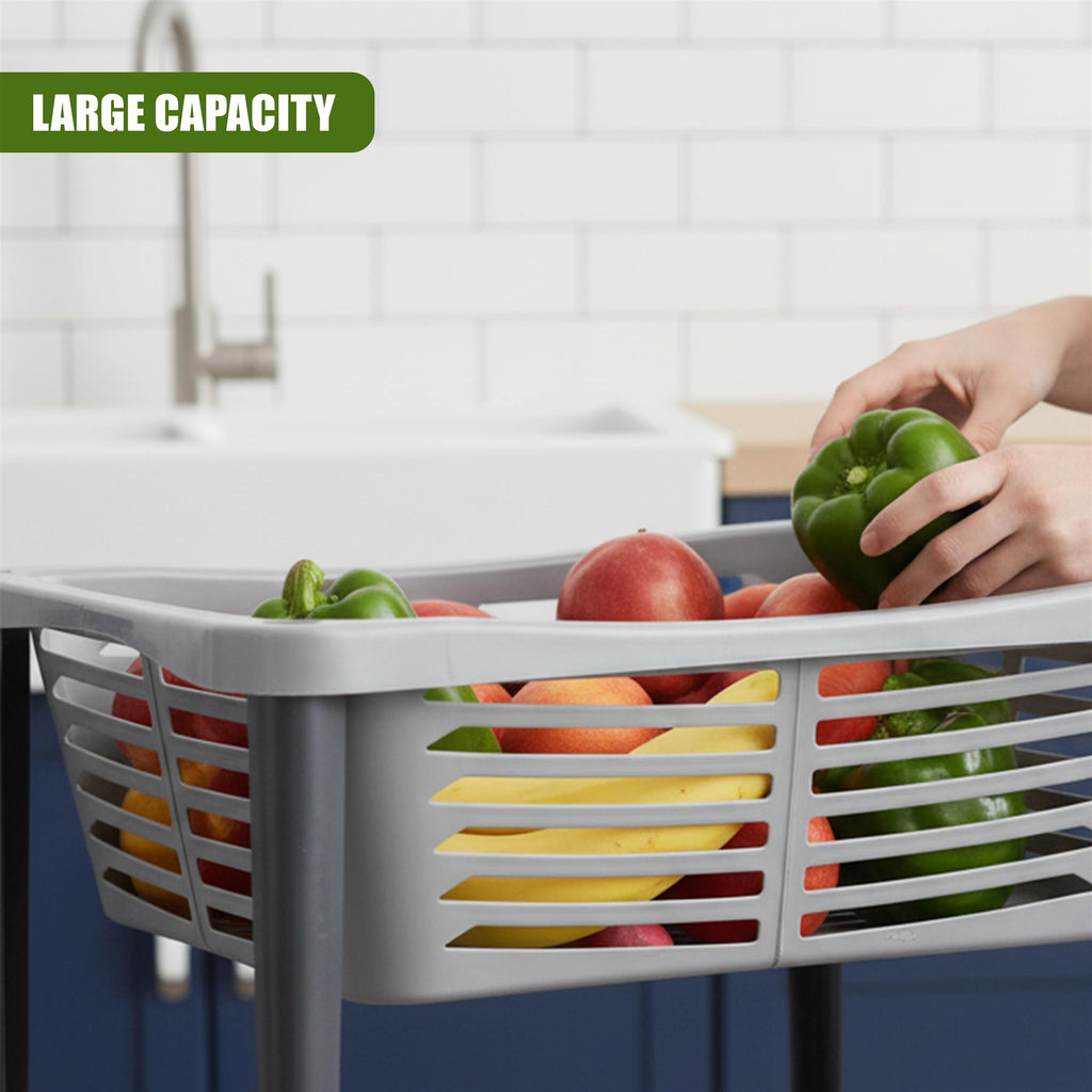 The wheel-mounted trolley is excellent for organising the kitchen, bathroom, children’s room, or office. 3-tier basket on wheels design can look very stylish and easy to move around at any time depending on your space availability and feasibility.