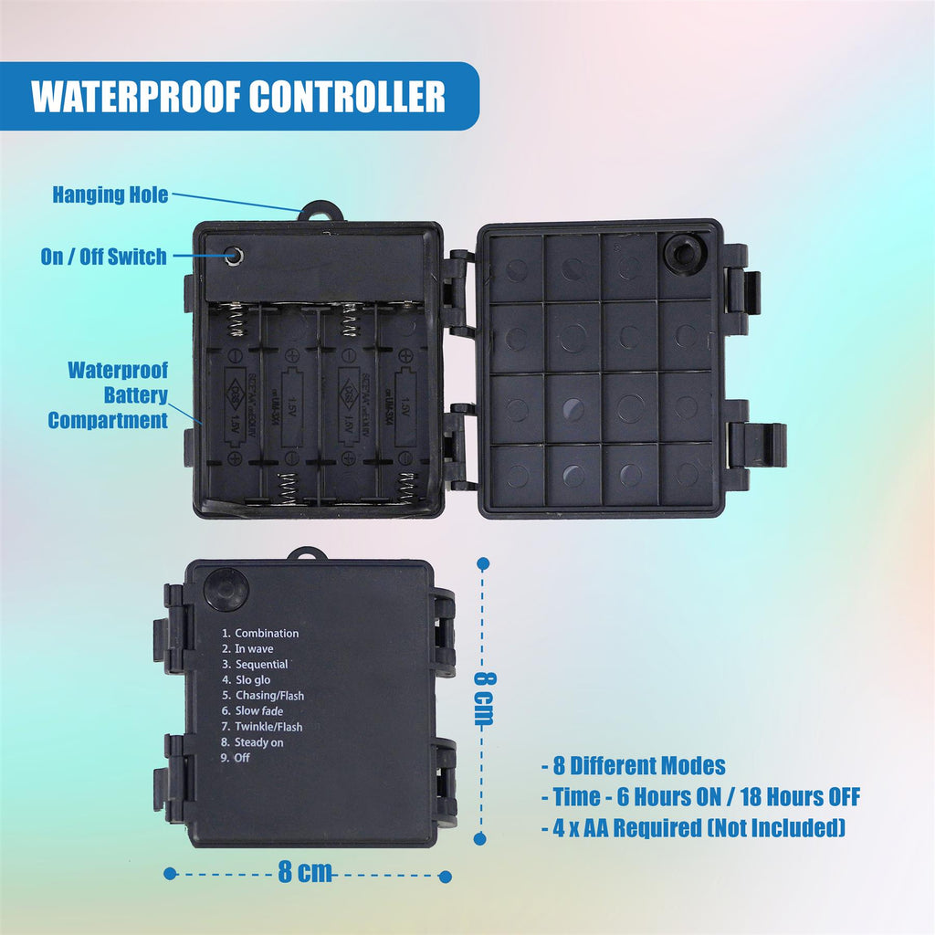 The waterproof battery box ensures these indoor and outdoor fairy lights battery powered can be used safely anywhere. Ideal as outdoor Christmas lights, battery operated string lights, or battery powered outdoor lights for year-round decorations.