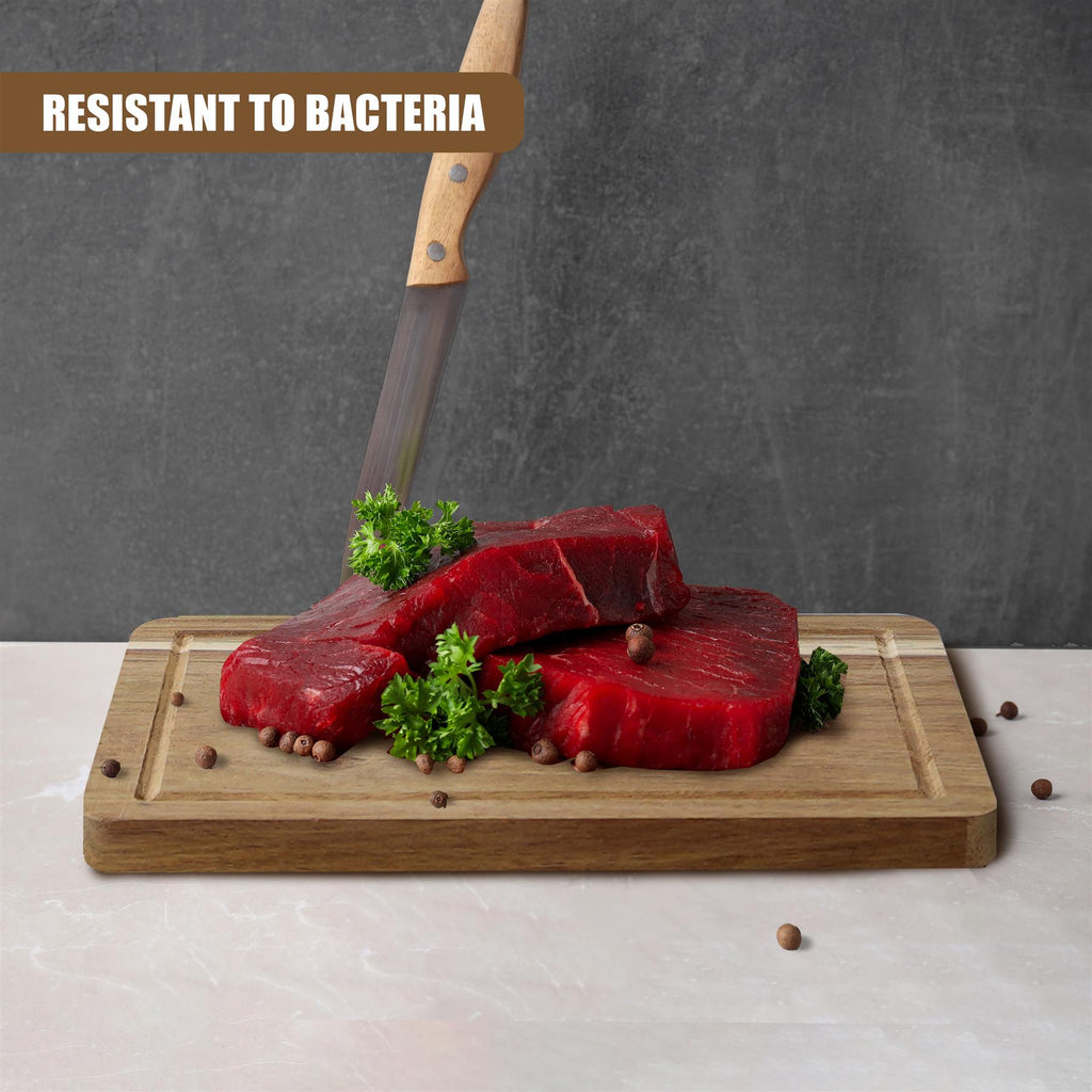 Made from acacia wood chopping board, naturally resistant to moisture and bacteria. Eco-friendly choice, long-lasting, and pre oiled for immediate use.