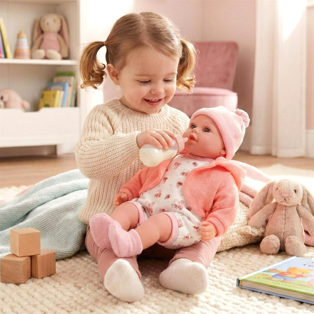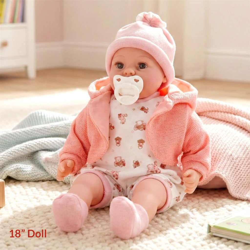 Crafted from premium vinyl and soft fabric, this realistic baby doll is perfect for snuggling. The durable design ensures that Peach can withstand hours of playtime, making her a favorite among baby dolls.