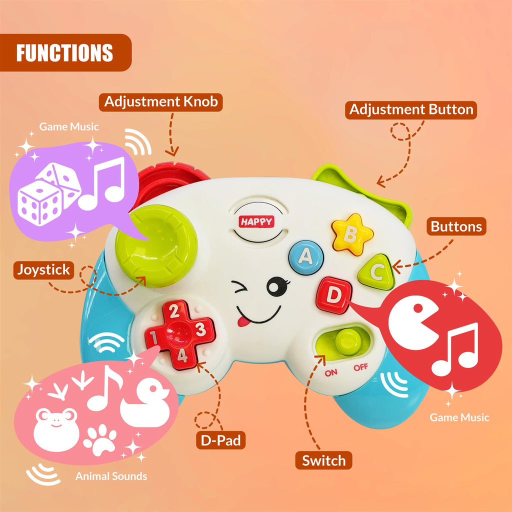 This baby game controller is a fun interactive baby toy with lights, sounds and music. It supports colour recognition, creativity and hand coordination, making it ideal among baby toddler toys. Safe rounded design ensures comfort while offering playful learning. A wonderful choice for toys for babies and first birthday gifts for boys and girls.