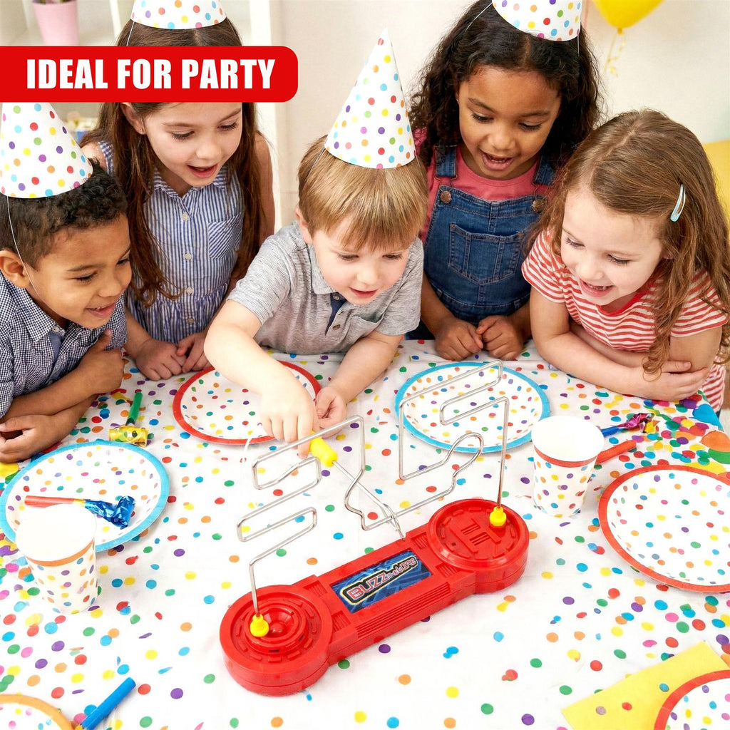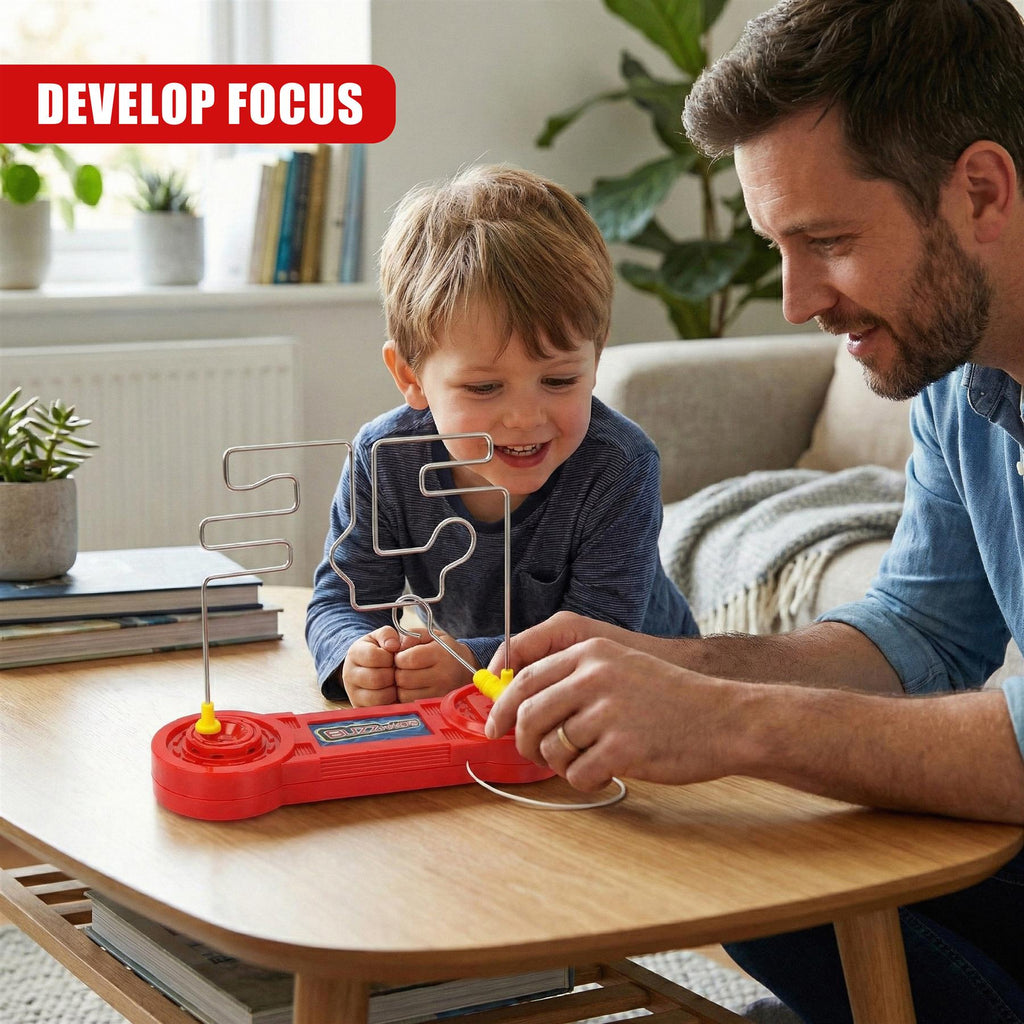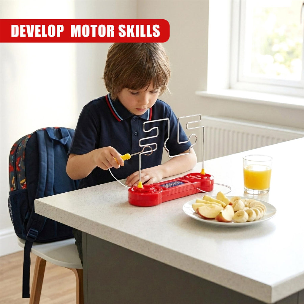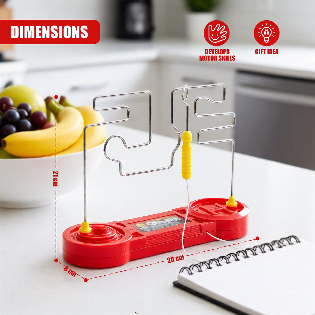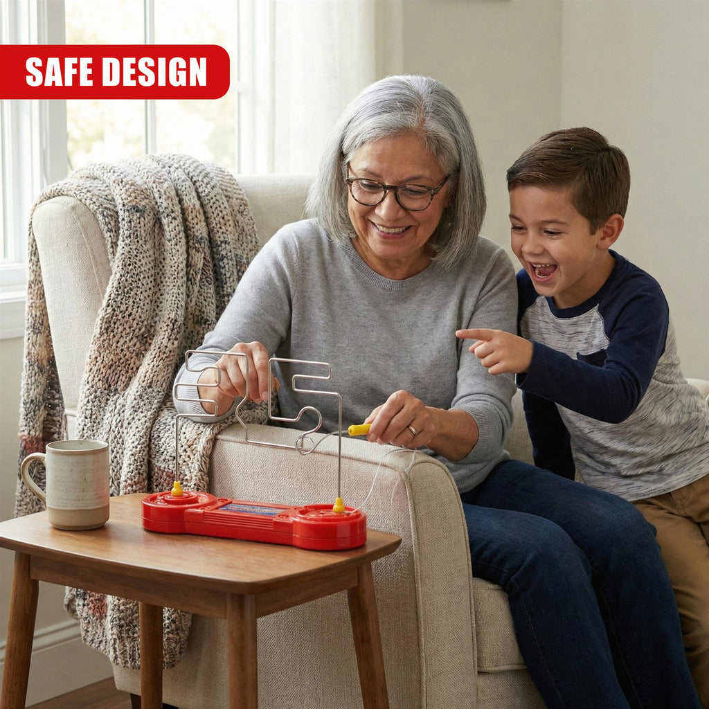 No cables needed. This battery-operated buzz wire game is lightweight and easy to set up anywhere. Completely safe for kids, the design ensures no shock, just a fun buzzing sound.