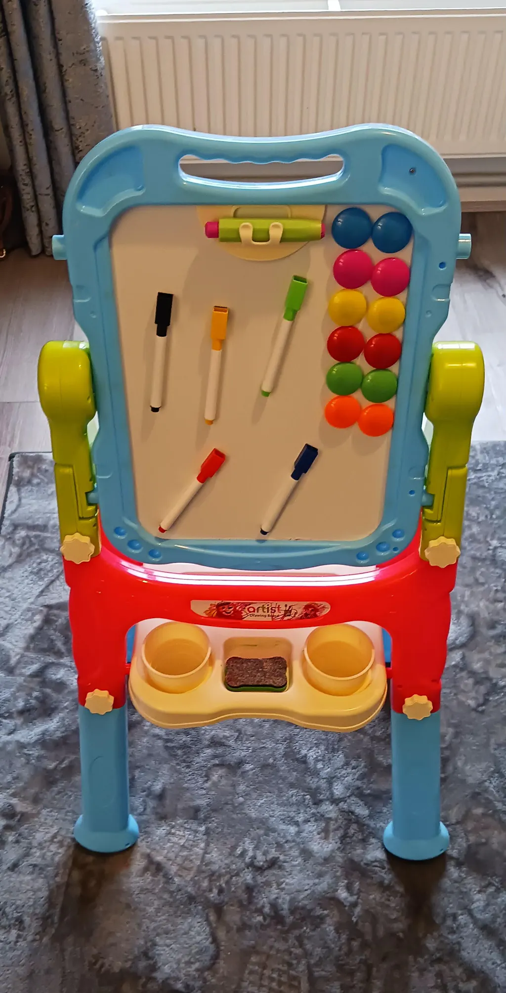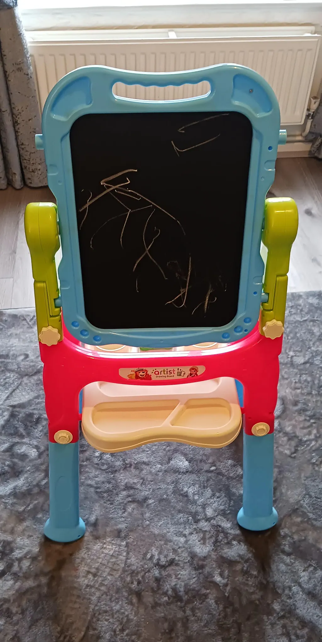 This kids easel double sided board encourages learning through drawing, writing, and spelling. It helps develop fine motor skills, creativity, and early literacy, making learning fun for toddlers and children.
