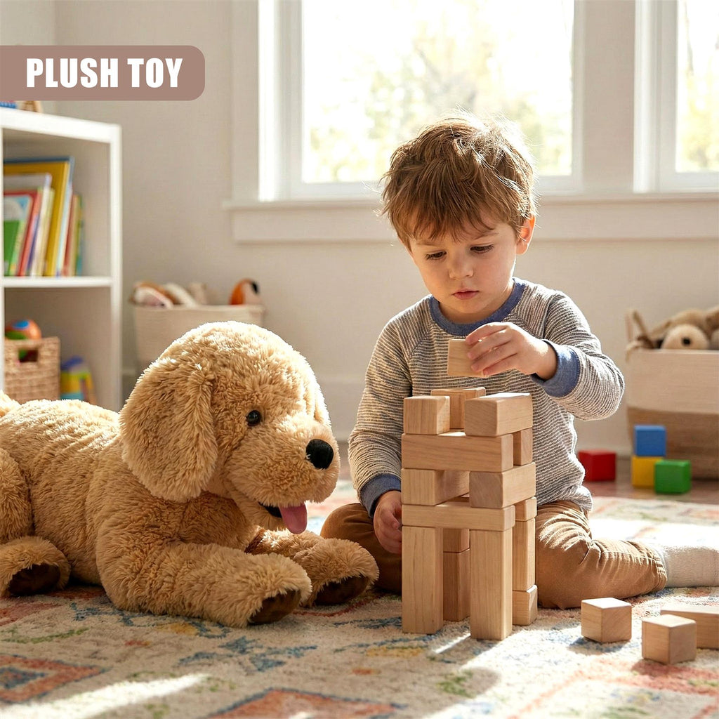 Wrapped in fluffy golden-brown fur that is gentle to the touch, this soft dog toy feels just like a real puppy. The coziest dog cuddly toy for warm hugs on cold days.