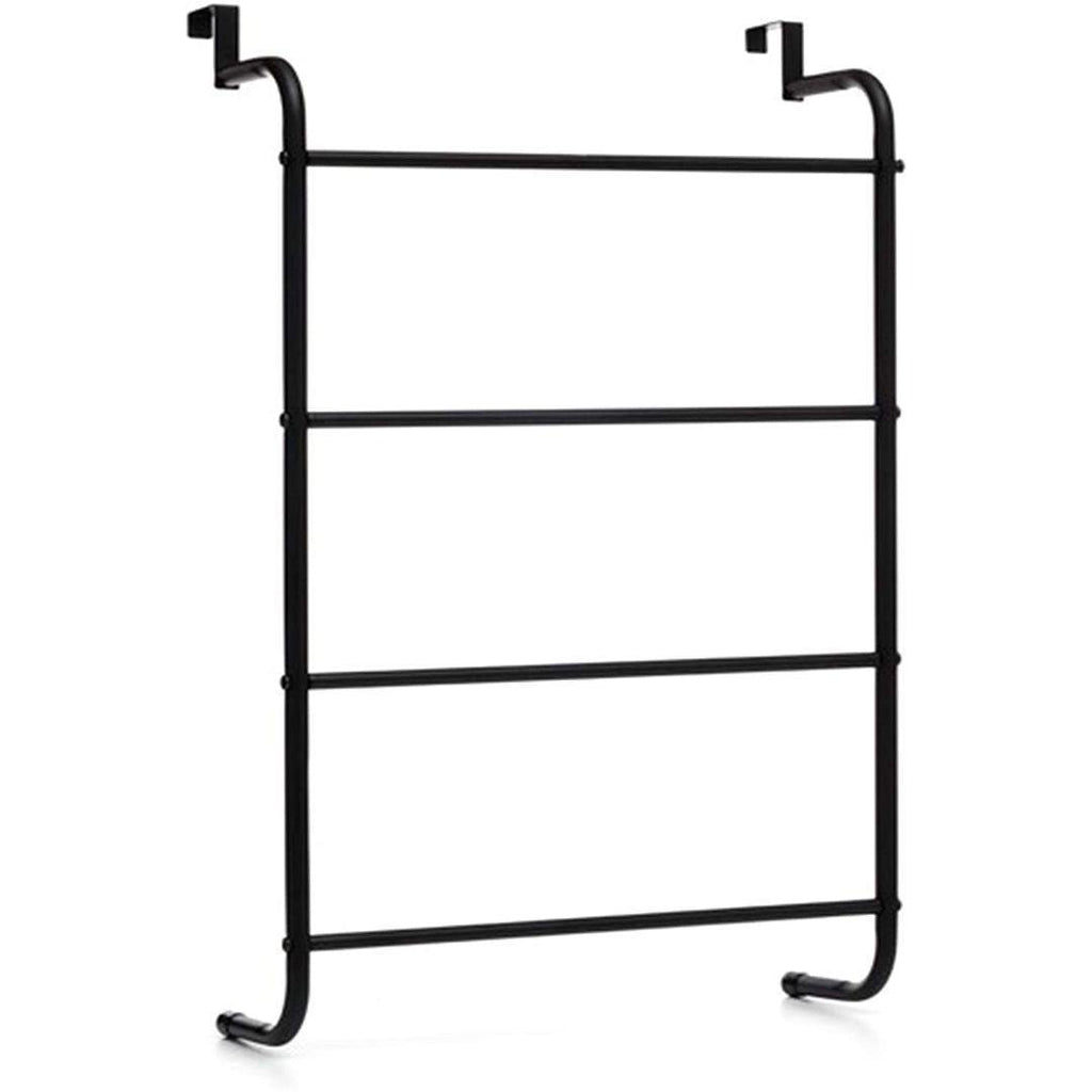 Maximise your home storage with this modern over the door towel rack. Designed to instantly turn unused spaces into a practical drying area, it features 4 robust steel bars for everyday use. The sleek metal frame simply hooks over any standard door, requiring absolutely no tools or drilling for assembly. It is the perfect hanger organiser for keeping large wet towels, face cloths, and garments neatly off the floor. Add a touch of contemporary style to any cluttered washroom today.