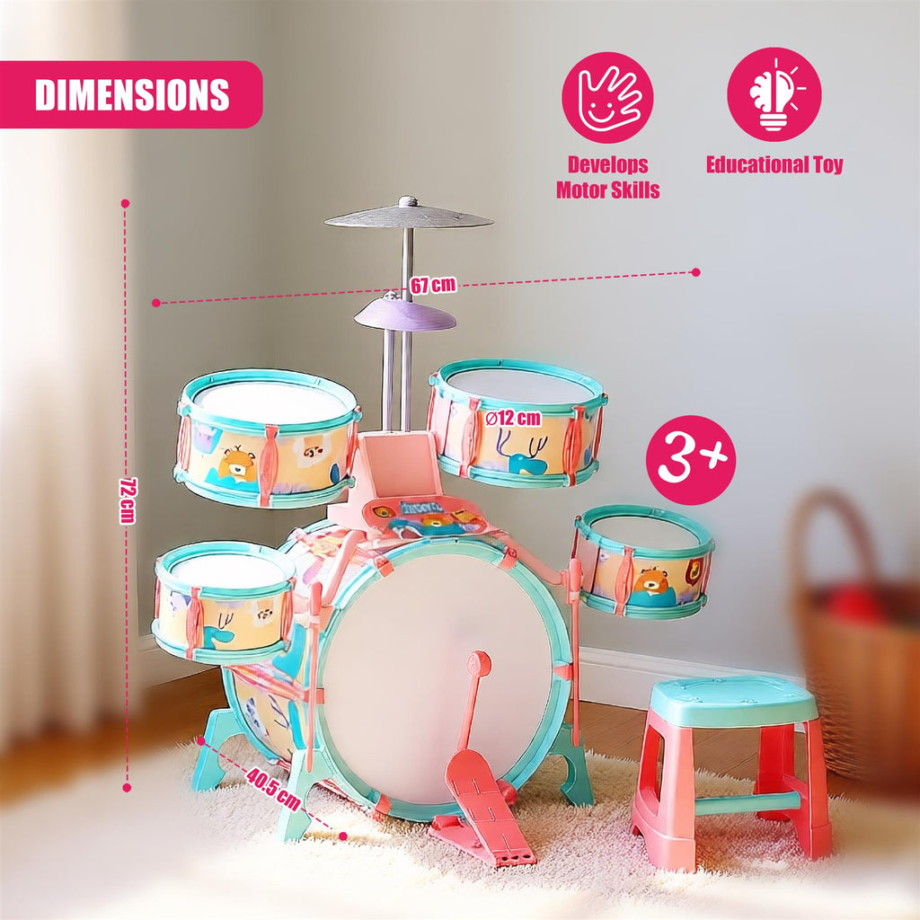 Playing drums for kids builds essential hand-eye coordination. With structured learning aids, this set is a smart choice of musical instruments for 3+ year olds.