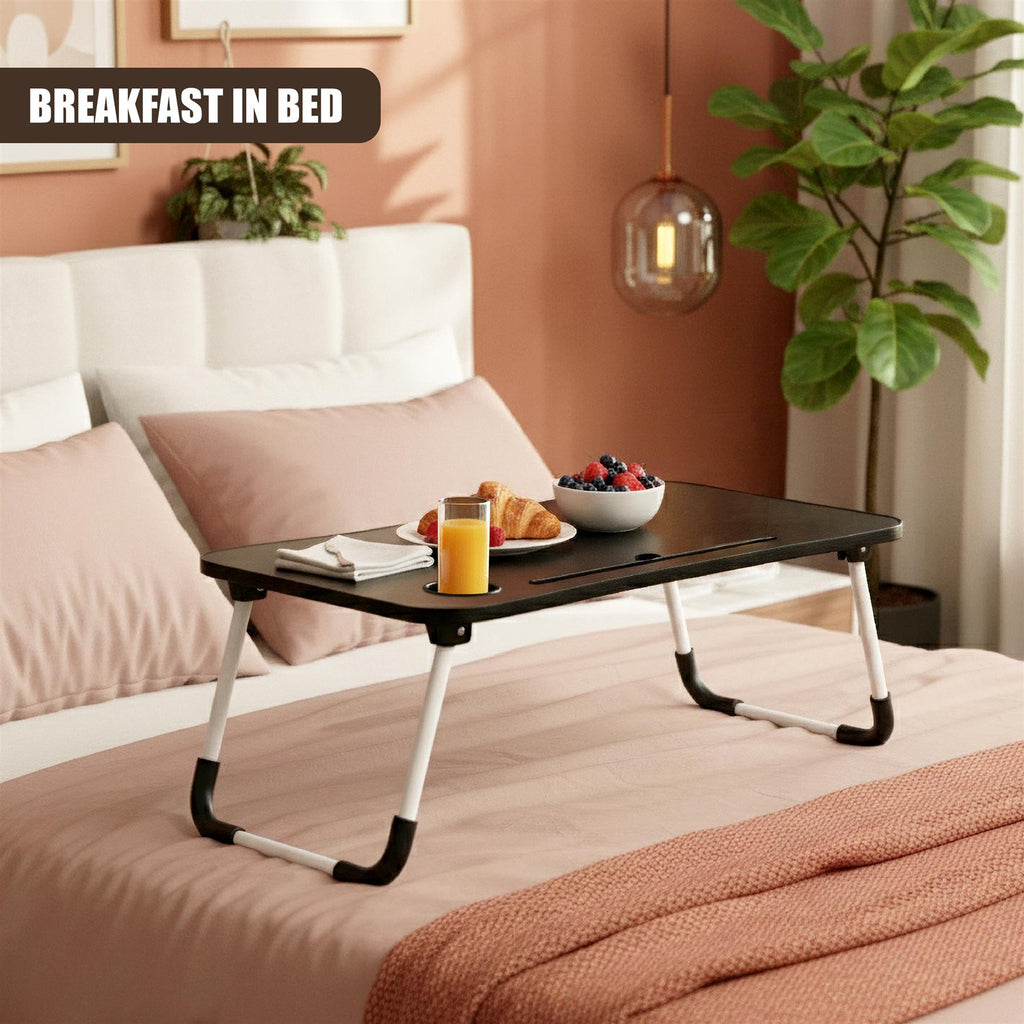 This foldable laptop table is lightweight and portable, making it an excellent choice for a laptop tray for bed or a compact lap desk.
