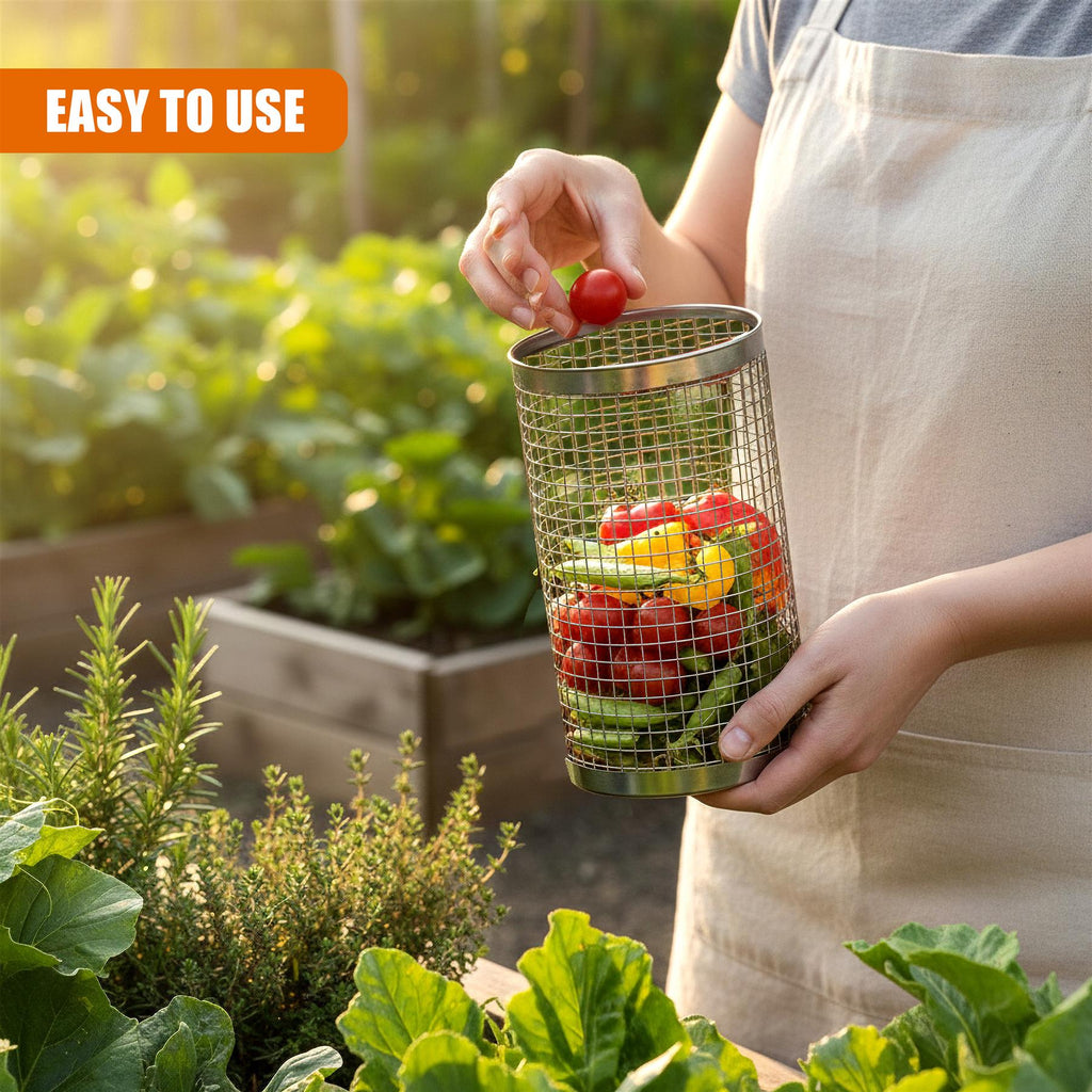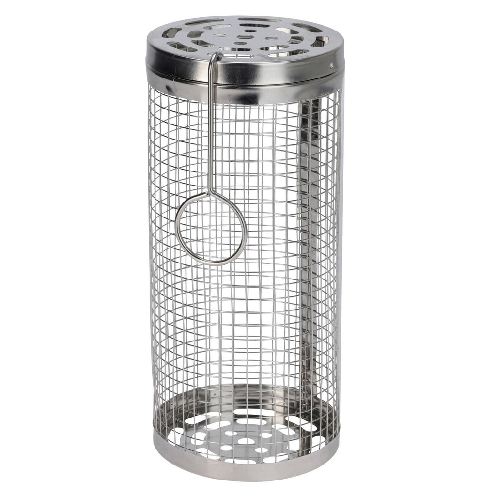 Transform your outdoor cooking with this stainless steel rolling grill basket. The innovative cylindrical design allows you to easily rotate chopped vegetables, meat, and shrimp for a perfectly even cook. Featuring a fine wire mesh and reinforced metal plates, it safely stops food from falling through the grates. Complete with a handy lid opener, this durable tube is a must-have addition to your BBQ accessories and a fantastic barbecue gift.