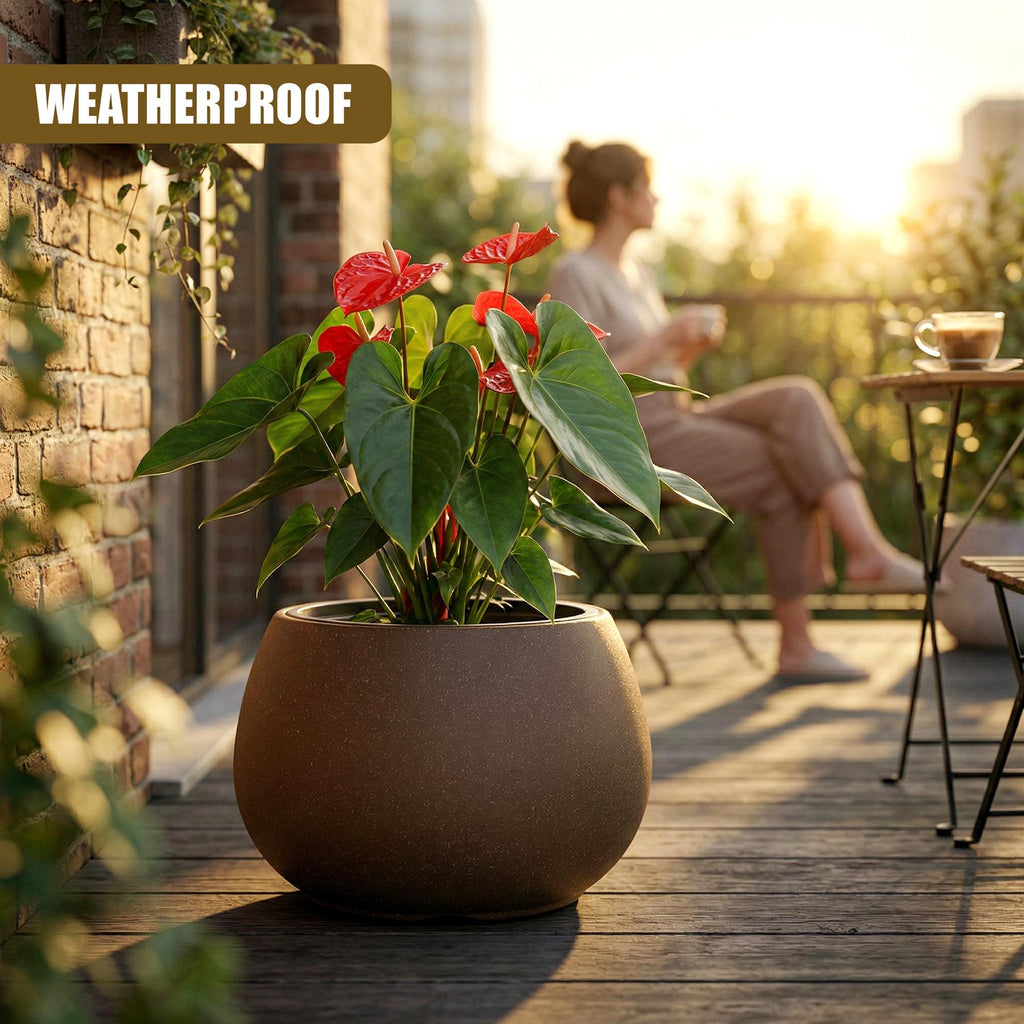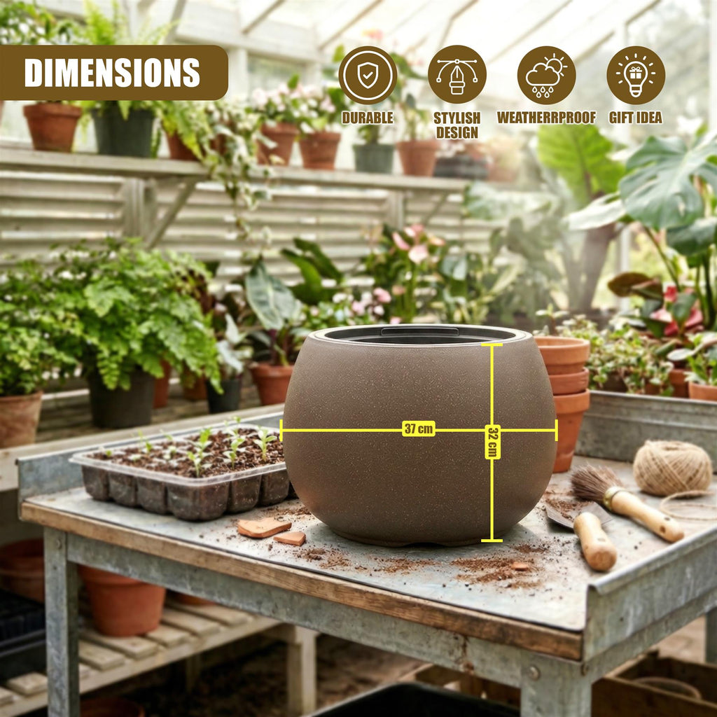 Transform your home and garden with this stylish 37cm round flower pot. Designed with a contemporary loft-style speckled finish, it seamlessly blends modern elegance with everyday practicality. This lightweight Planter features a highly convenient removable black insert that makes repotting and daily plant care completely effortless. Fully weatherproof, frostproof, and UV-resistant, it is built to endure the outdoor elements, but works just as beautifully as an indoor plant pot to complement your modern living room accessories.