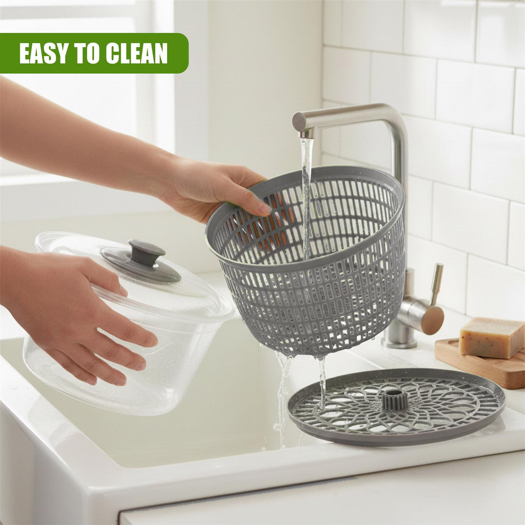 The lid features secure snap-lock clips to keep the unit firmly closed during operation. Once you are done, the entire lettuce spinner disassembles easily for thorough cleaning, making it a hygienic and practical addition to your kitchen tools.