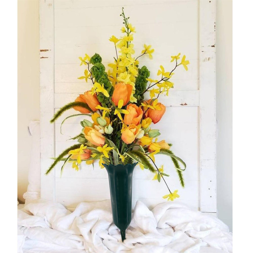 - DIMENSIONS: The set includes 2 quality vases, each measuring H 25 cm x top Ø 8 cm, spike measures 3.5 cm. Ideal for providing comfort to the families, and creatively honour a loved one’s memory— such as placing tribute flowers by their headstone.