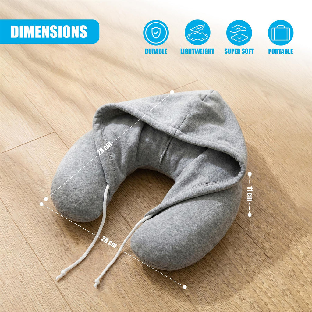Goes anywhere and is very light and easy to transport. The soft travel pillow is made of cosy fabric material and filled with supporting polystyrene microbeads, which adjusts to your neck, effectively relieving neck/shoulder pain. Practical hooded design addition to the neck pillow covering your head & adding to your outfit.