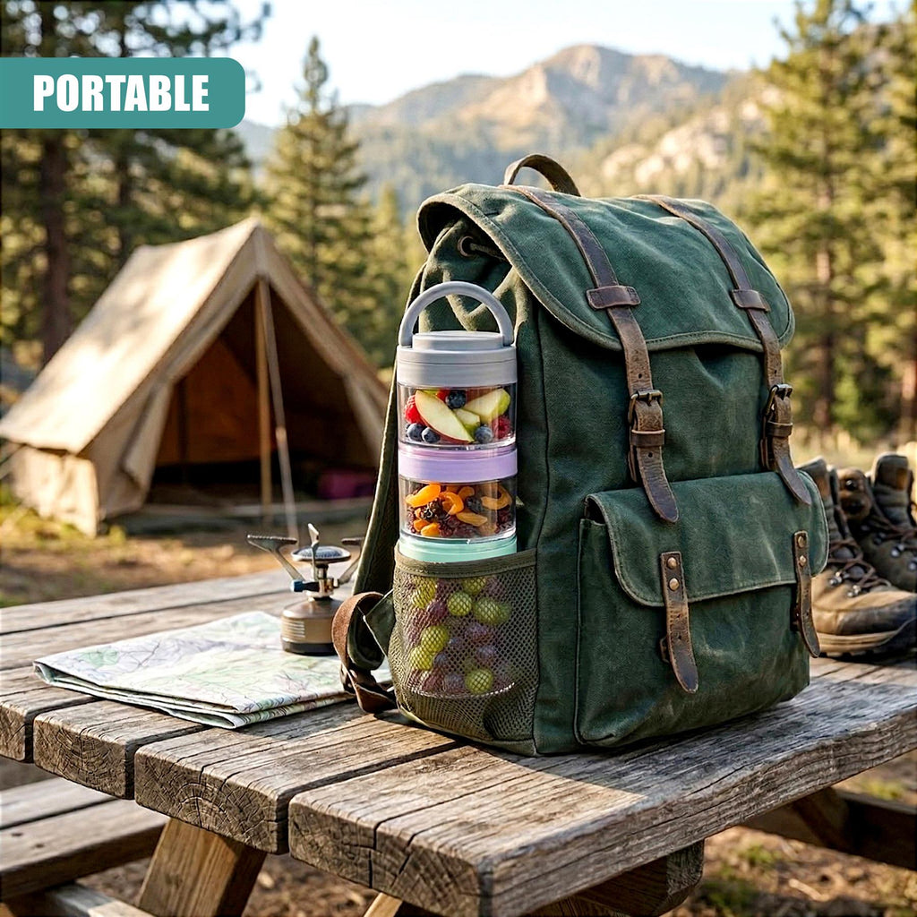 Keep your meals perfectly organised on the go with these clever stackable snack pots for kids and adults. Featuring interchangeable twist-and-lock lids, this sturdy 3-piece set includes one 400ml and two 200ml containers that screw together into a compact tower. The top lid boasts a handy removable carrying handle that fits any tier. Perfect for camping, picnics, or as everyday food organiser storage containers for nuts and dry snacks.