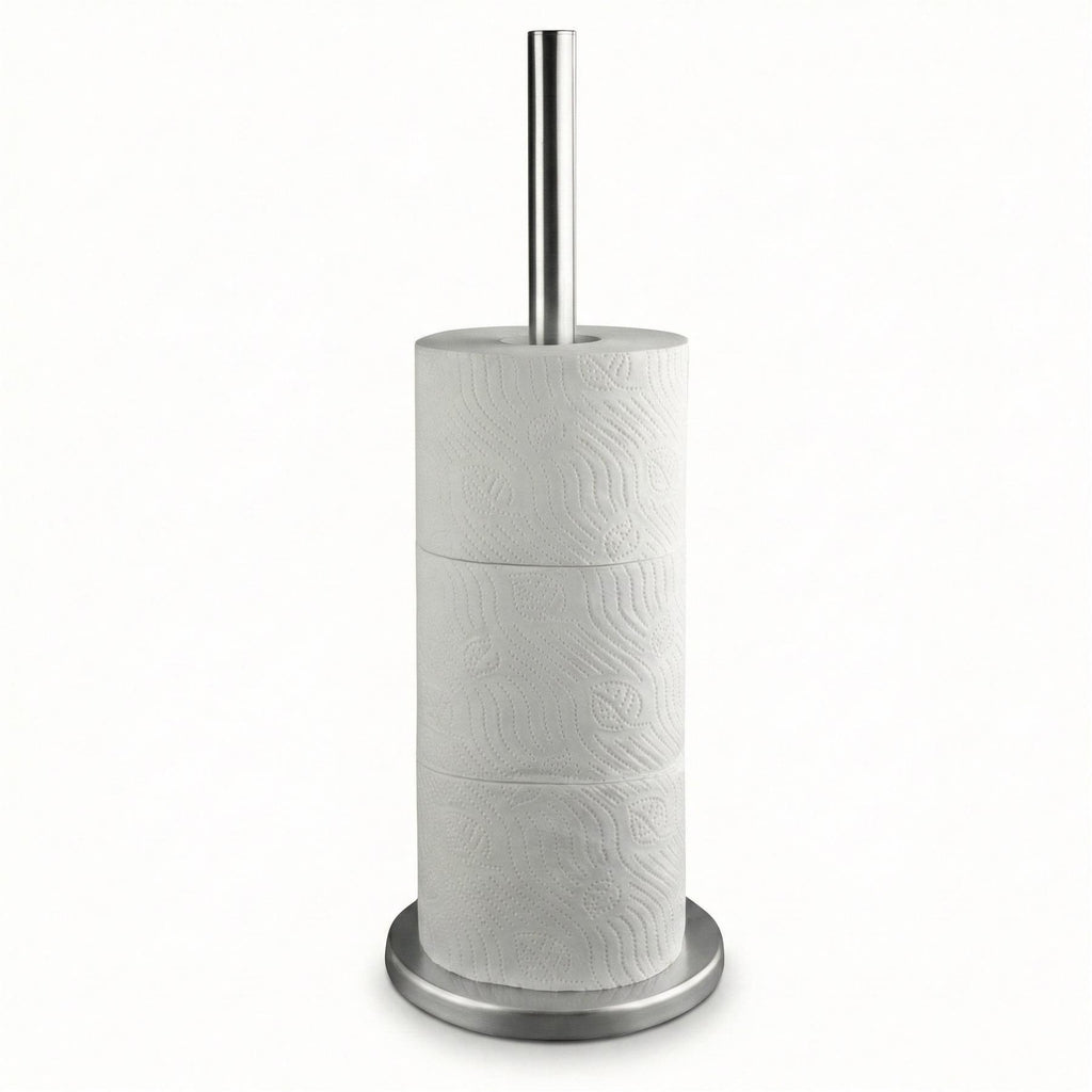 Our Free Standing Toilet Roll Holder is designed for both style and practicality. This sleek stainless steel toilet roll holder features a vertical pole that can store up to 4 rolls, ensuring you never run out of paper unexpectedly. Its compact, free-standing design requires no drilling or installation, making it perfect for rental properties, RVs, and guest bathrooms. The shiny silver finish adds a modern touch, while the sturdy base ensures stability while storing your loo roll.