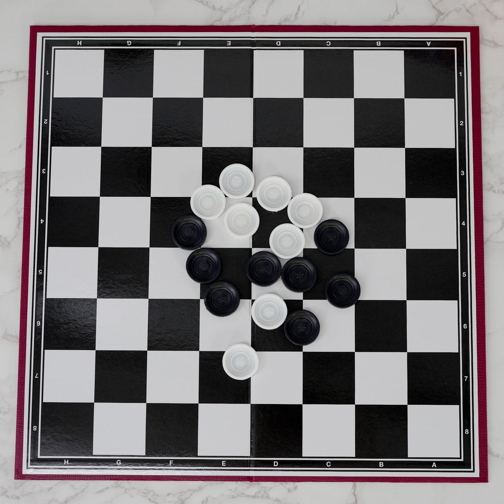 This classic board game includes a durable folding board featuring a standard 8x8 black and white grid, along with a full set of stackable counters for Kinging your pieces.