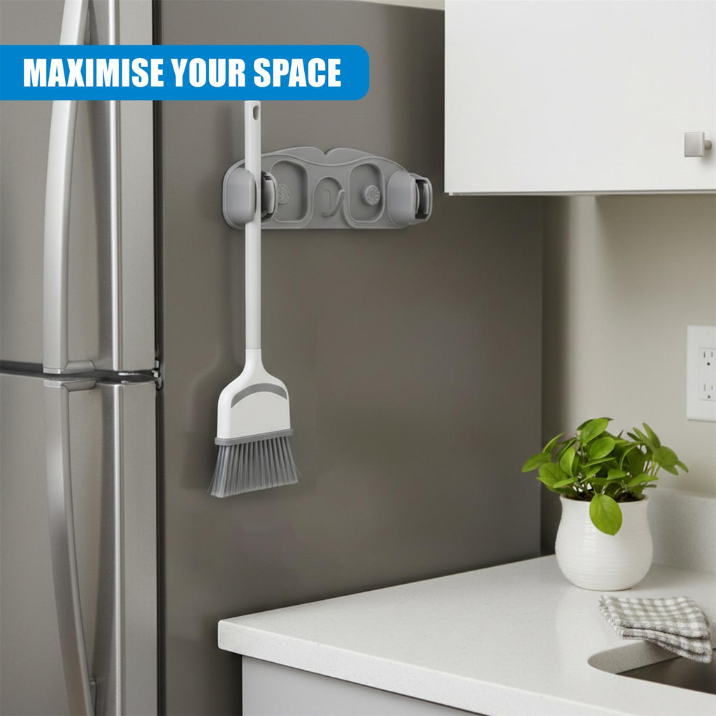 Made from sturdy, high-quality materials with a sleek grey finish. This mop holder wall mounted solution is built to last, saving space while keeping brooms, brushes, and mops in order for everyday home or utility room use.