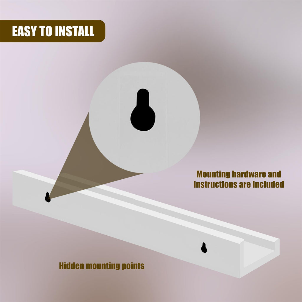 Achieve a clean, floating look instantly. This set of three wall mounted shelves includes all hardware and instructions for quick setup. The seamless design makes these floating white shelves look built-in.